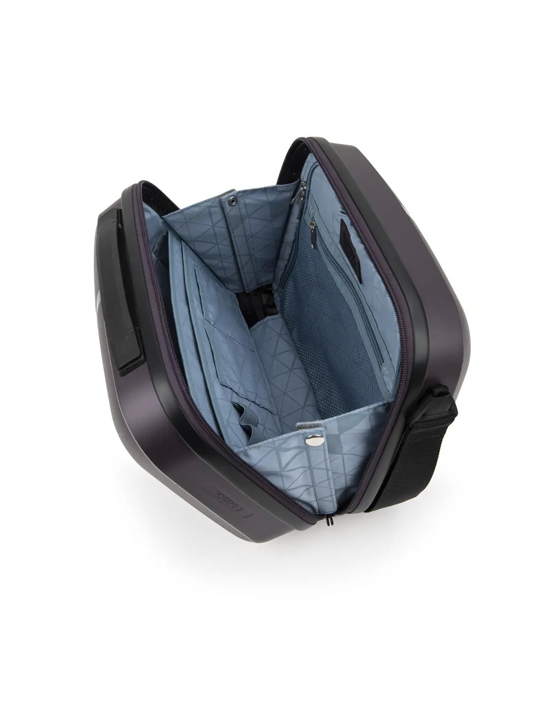 El neceser incluye un sistema de acople a maleta, ideal para colocarlo sobre el trolley durante el viaje. También cuenta con una correa para llevar al hombro, que permite transportarlo cómodamente cuando lo necesitas.